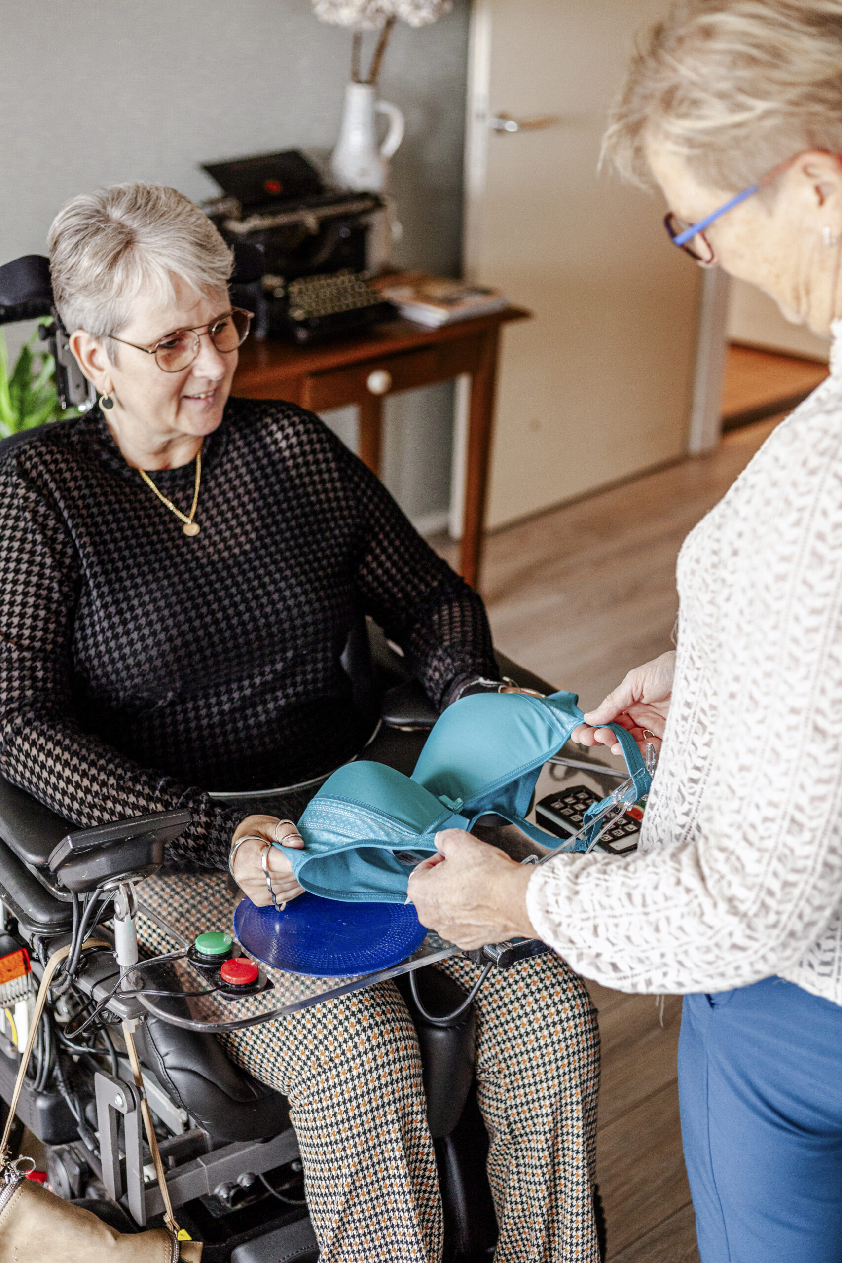 We plannen een afspraak in voor het huisbezoek en ik kom naar je toe. Waar nodig help ik met het aanpassen.